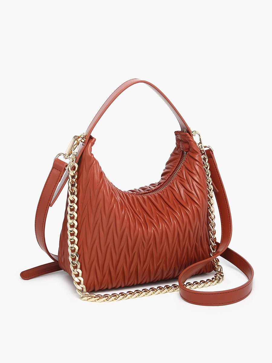The Brenna Matelassé Pattern Shoulder Bag is a stylish and versatile accessory. crafted from premium vegan leather with an elegant matelassé pattern. Featuring a top zip closure and a convenient handle. this bag offers multiple carrying options with its removable chain strap and adjustable crossbody strap. Perfect for transitioning from day to night. the Brenna is the ultimate blend of fashion and functionality.