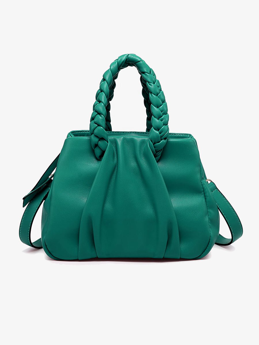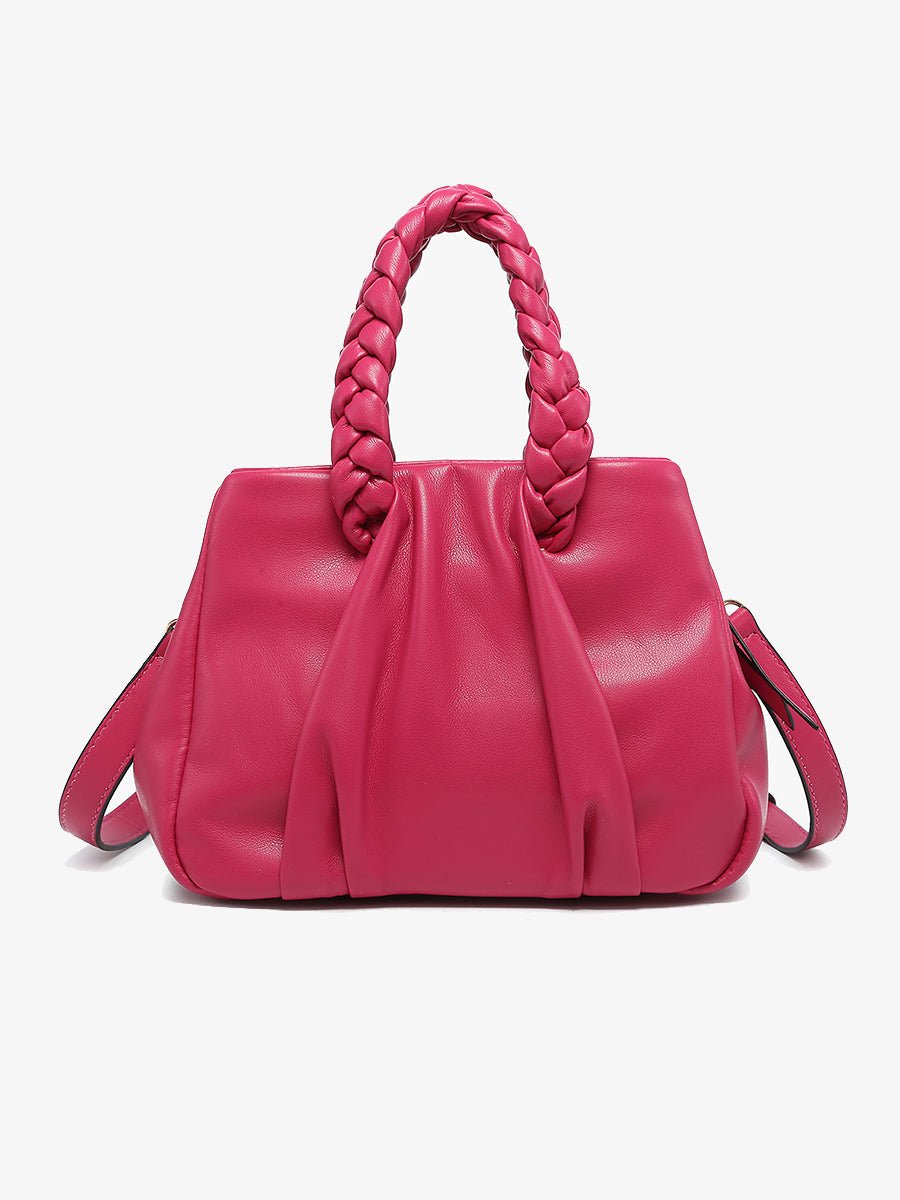 - Ruched braided dual handles for a feminine touch