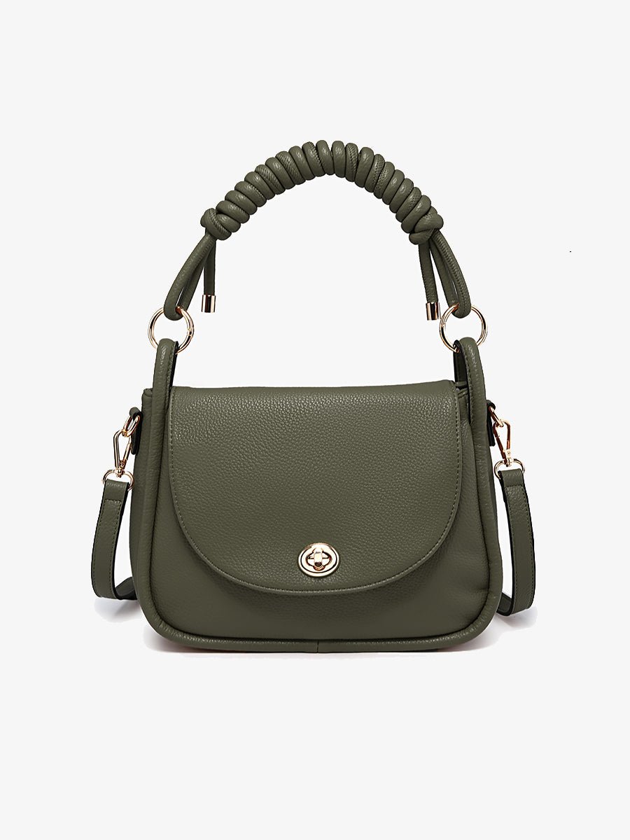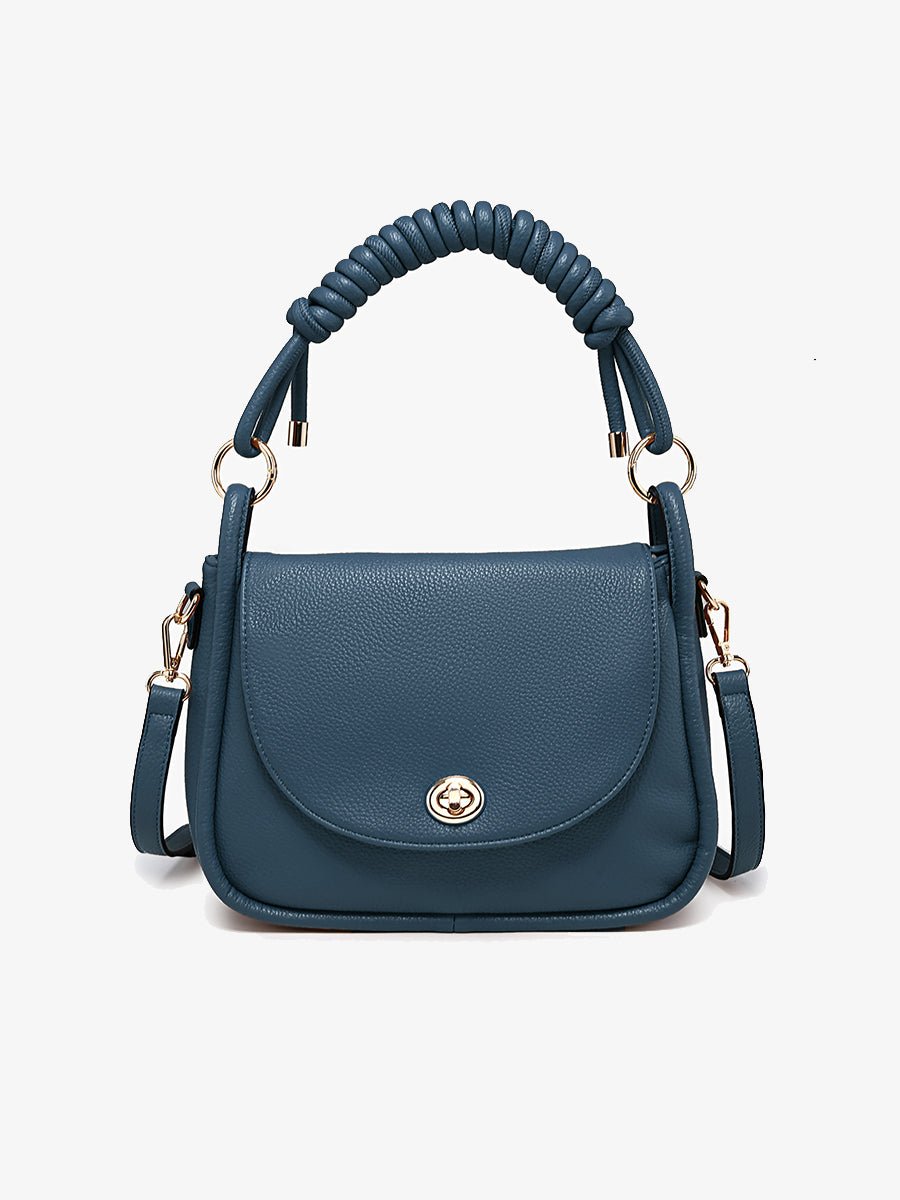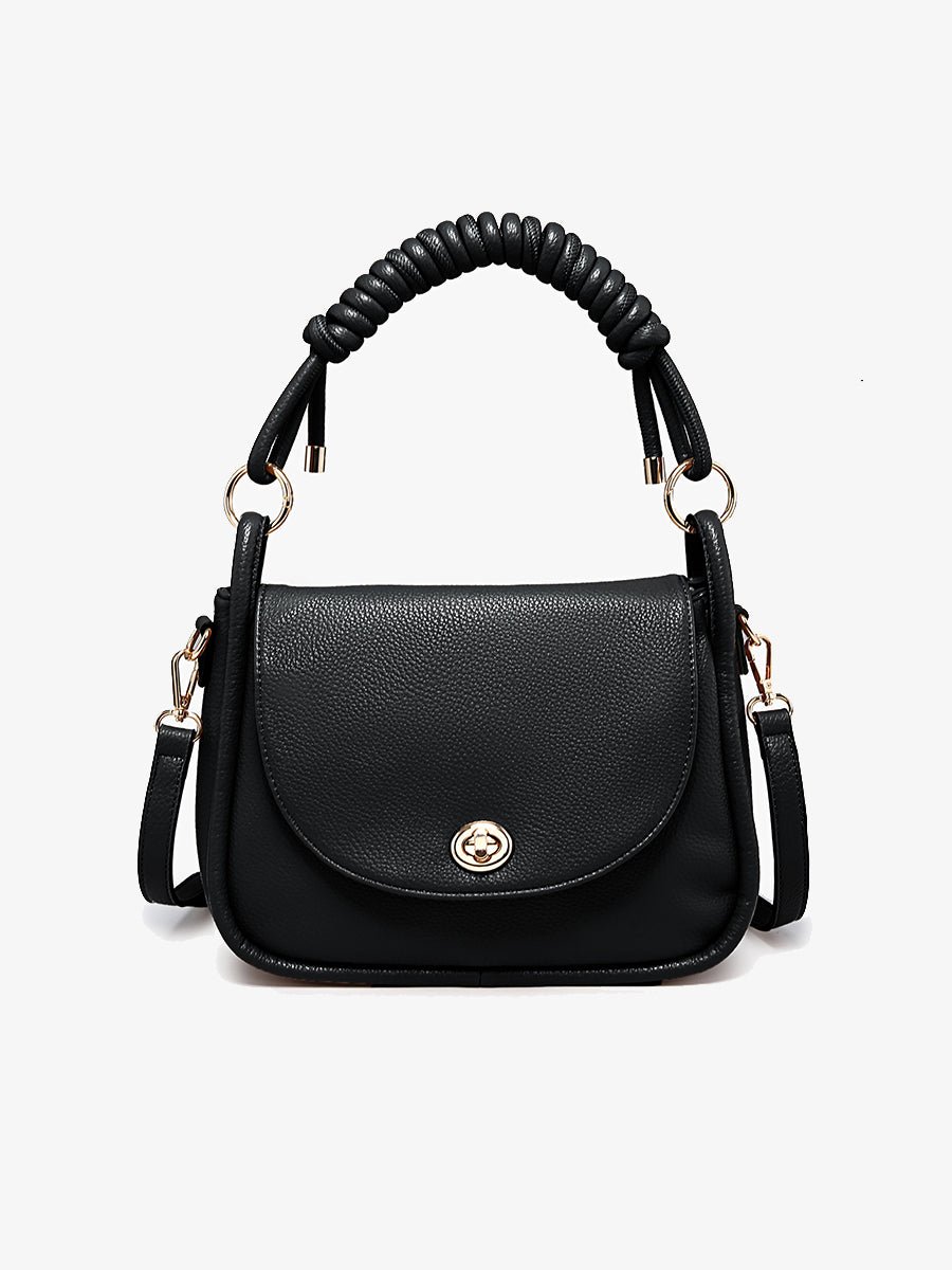 - Vegan leather messenger bag with a chic twist-lock closure
