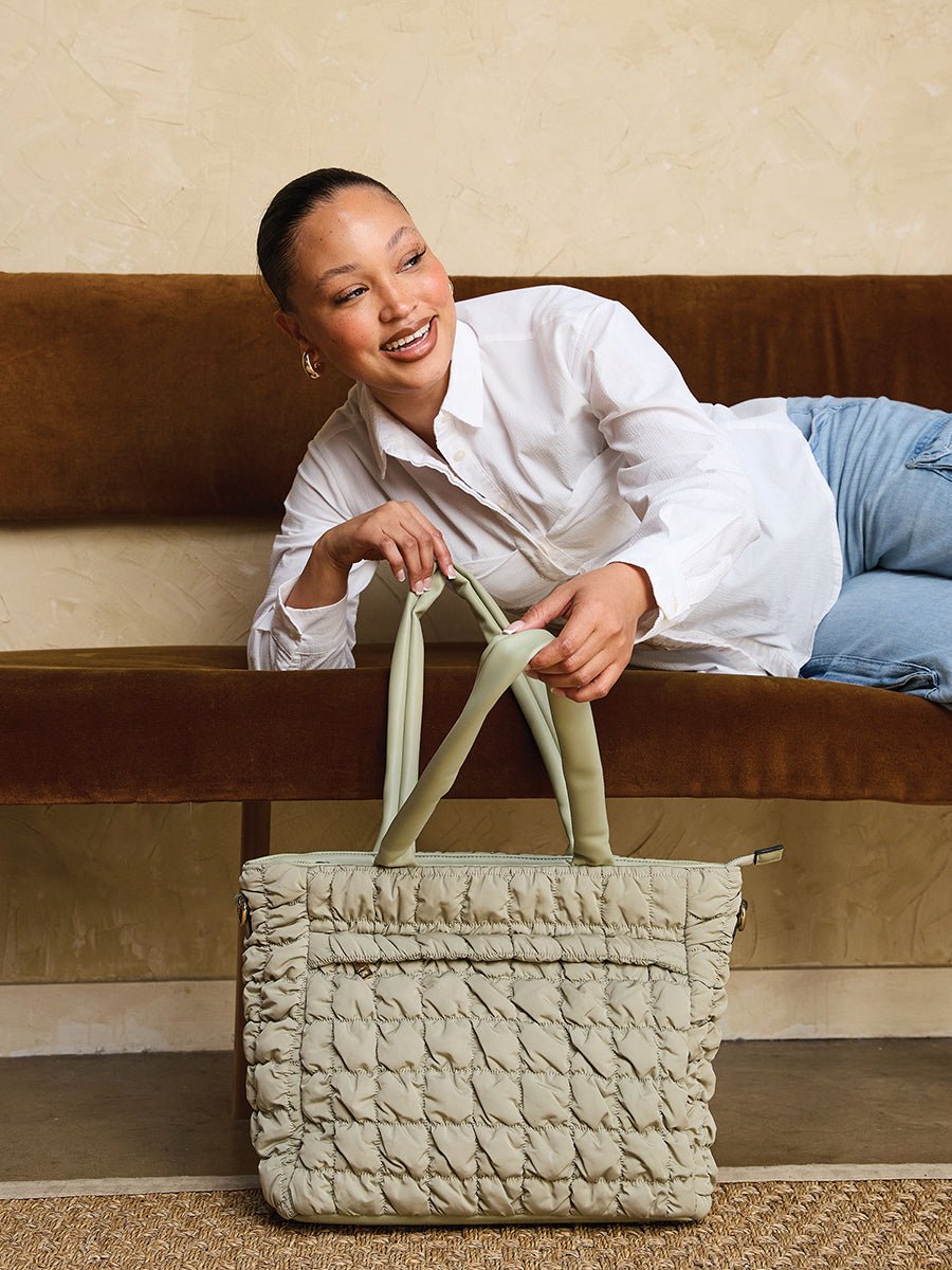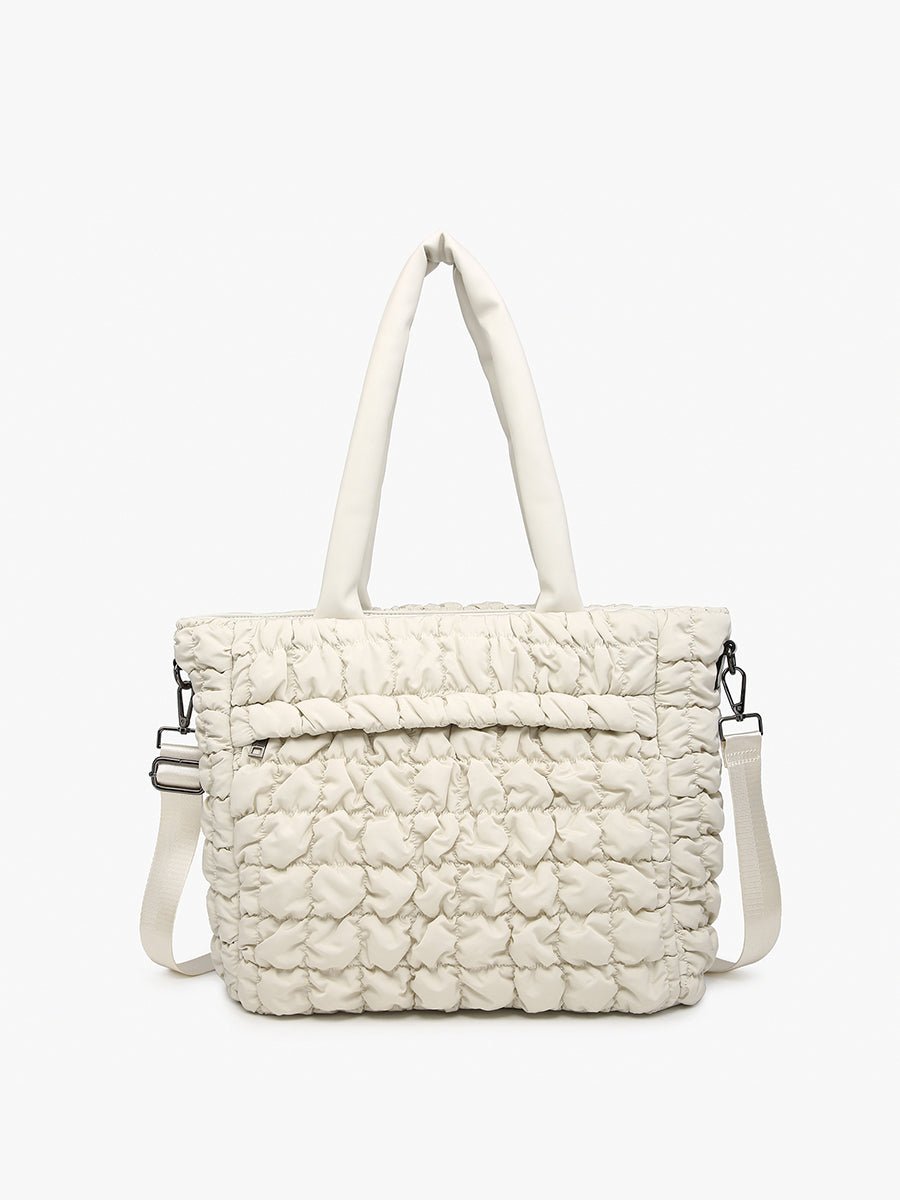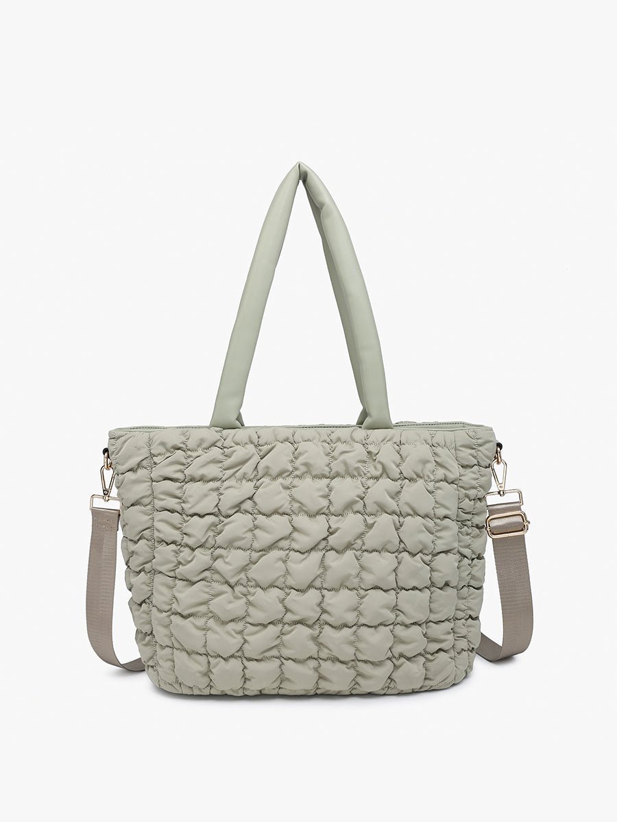Design: Quilted puffy nylon tote bag for a modern. stylish look.